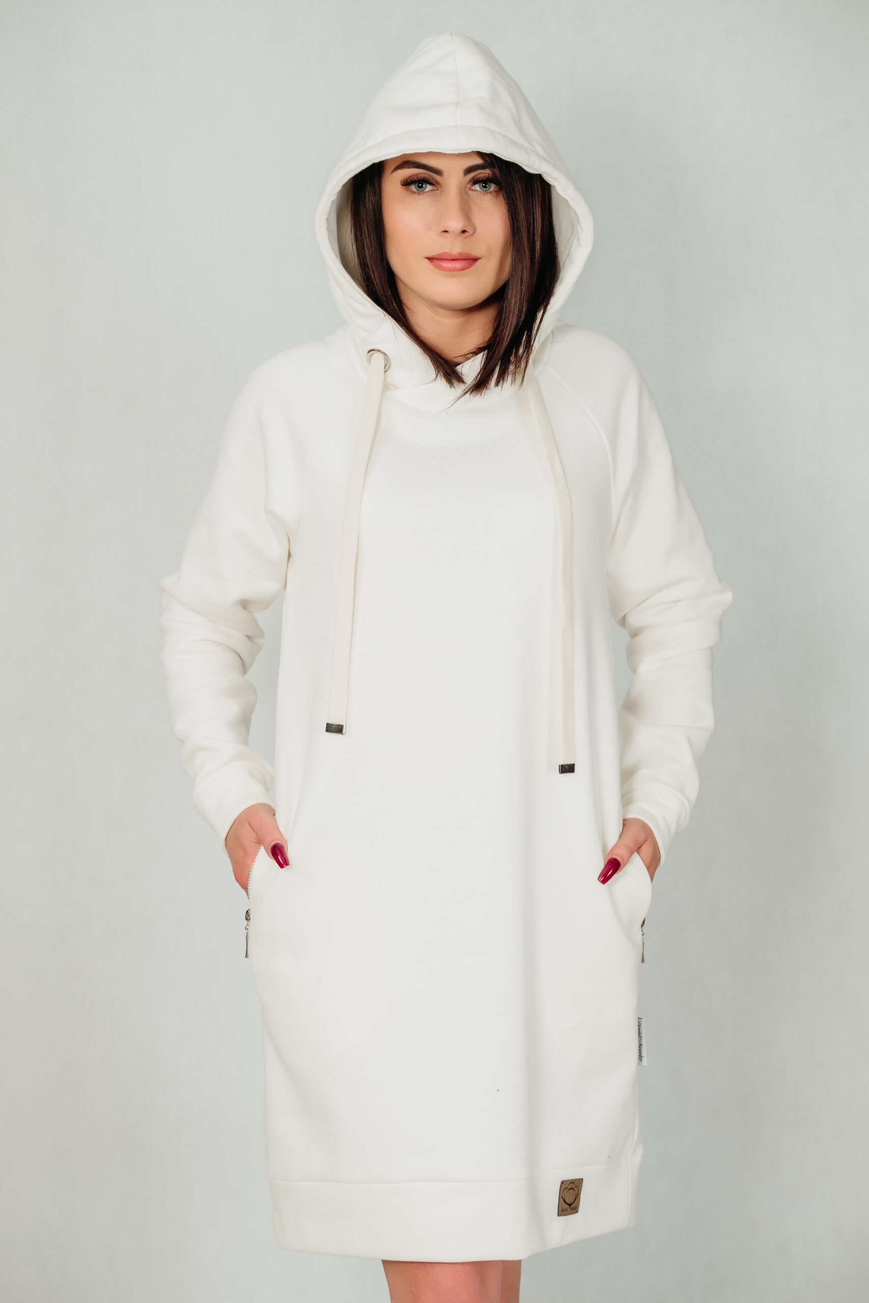 Sukienkobluza wyposażona jest w obszerny, gruby kaptur, który ochroni Cię przed chłodem, a głębokie, zasuwane kieszenie pomieszczą wszystkie Twoje drobiazgi.