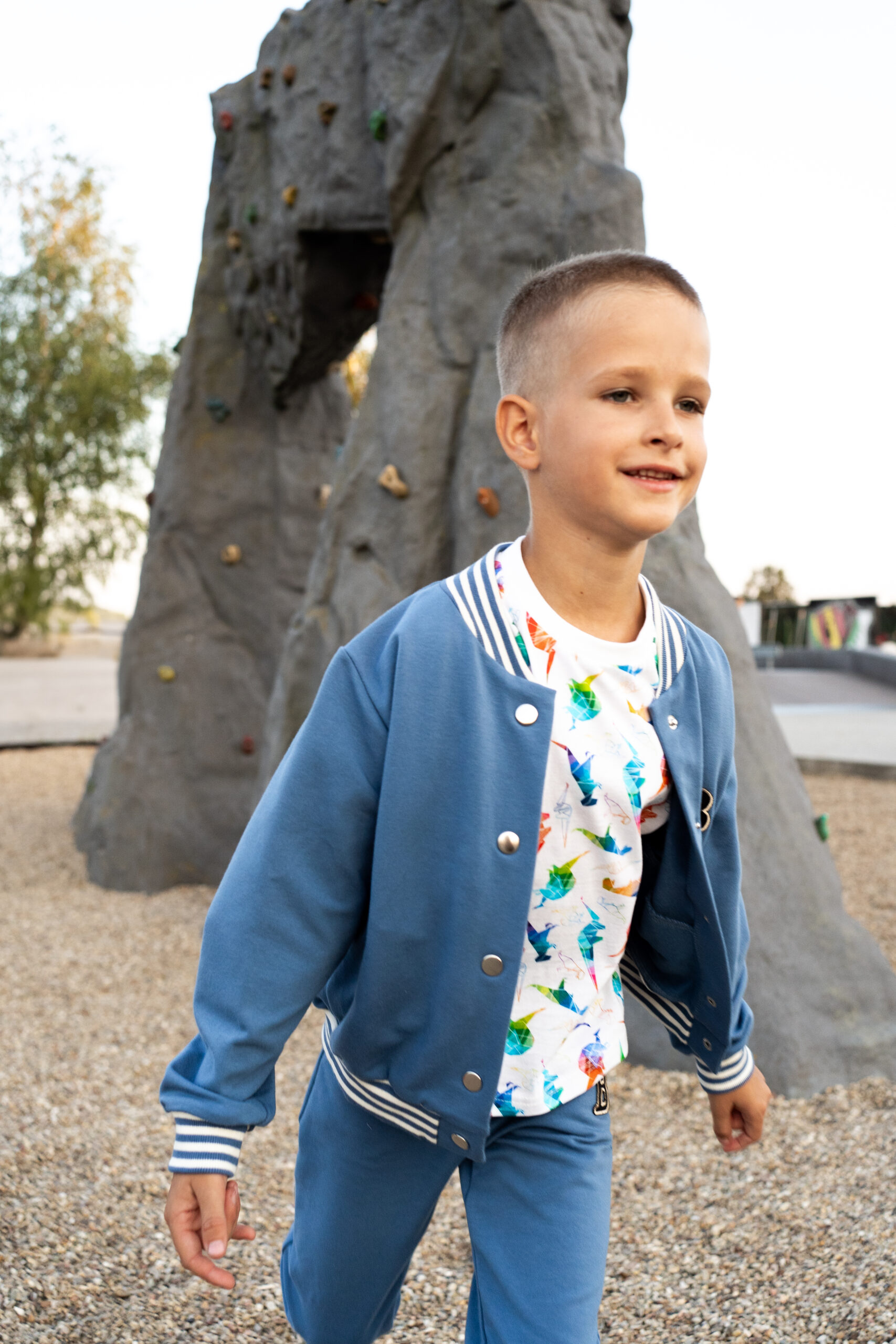 Wyjątkowy komplet który świetnie sprawdzi się w szkole i na placu zabaw! Luźny fason bomberki nie krępuje ruchów, a kieszenie pomieszczą wszystkie skarby naszego malucha:) Spodnie również zostały wyposażone w kieszenie, ściągacze na dole świetnie trzymają nogawkę tuż nad kostką.