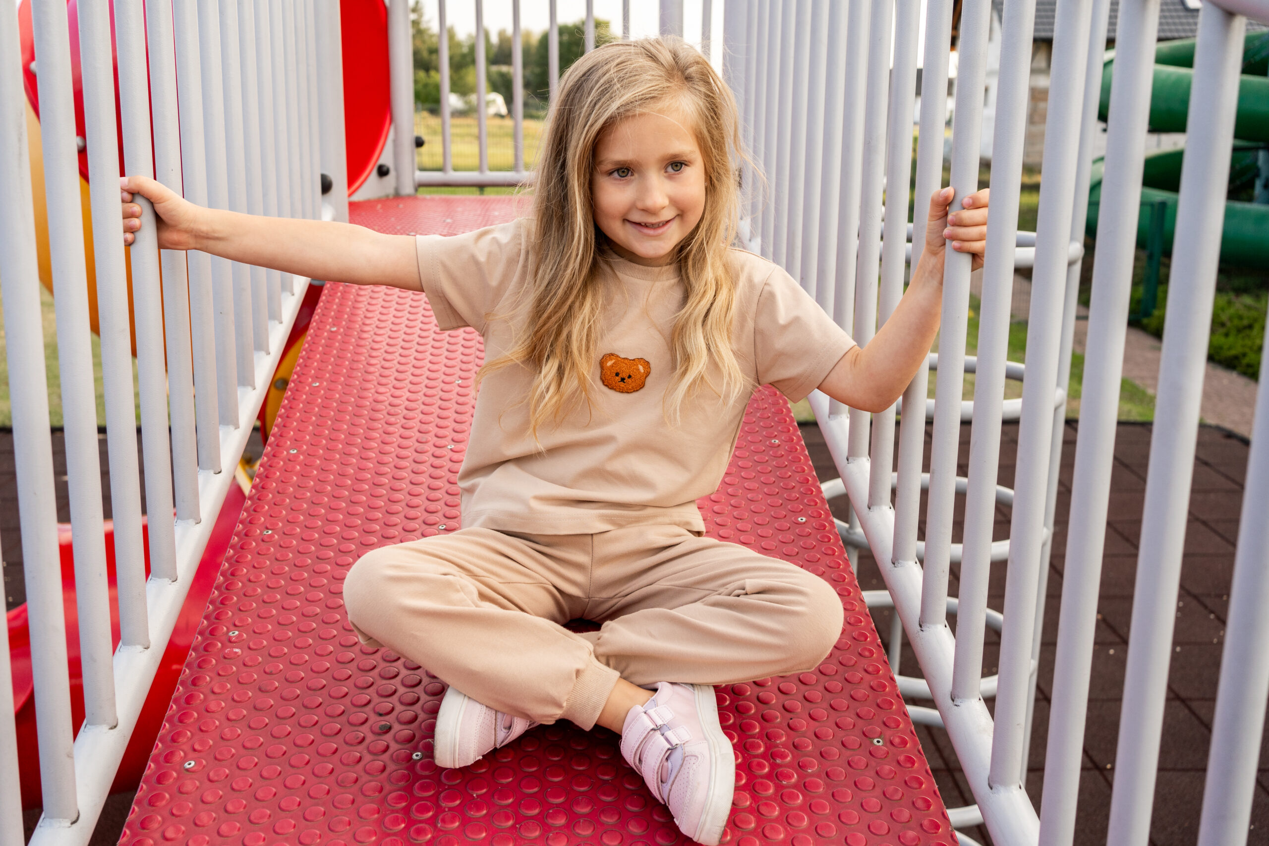 Uszyta z elastycznej dzianiny bawełnianej przyjemnej i przyjaznej dla skóry dziecka.